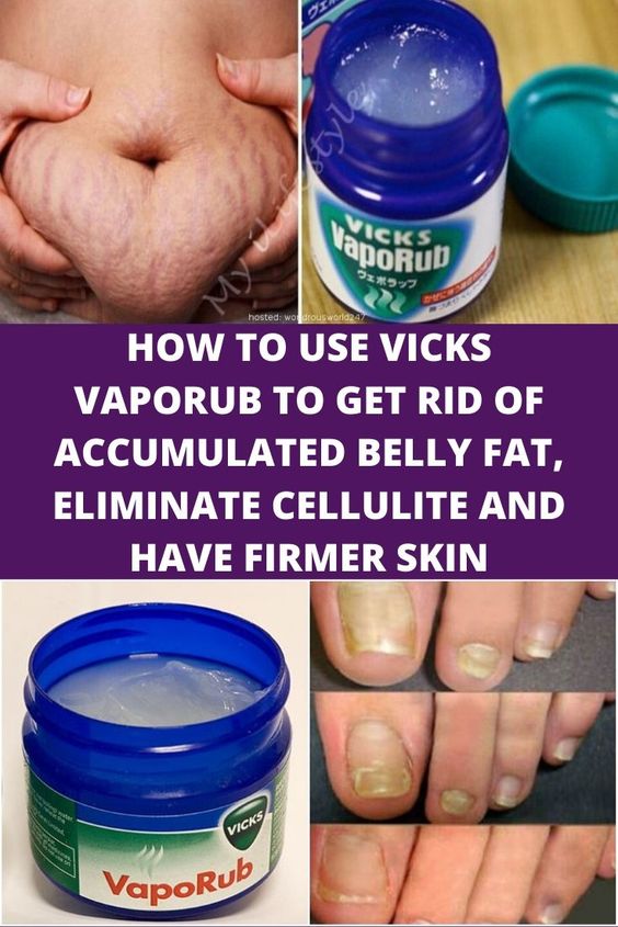 It can help you fight fat accumulation, remove cellulite and make skin tissue firm. All you have to do is to mix Vicks VapoRub with baking soda, camphor and a little bit of alcohol to prepare the fat burning cream. Apply onto the problematic area and wrap into black plastic or a clamping strip. You can do this while you are at home, at work or before doing your exercises.